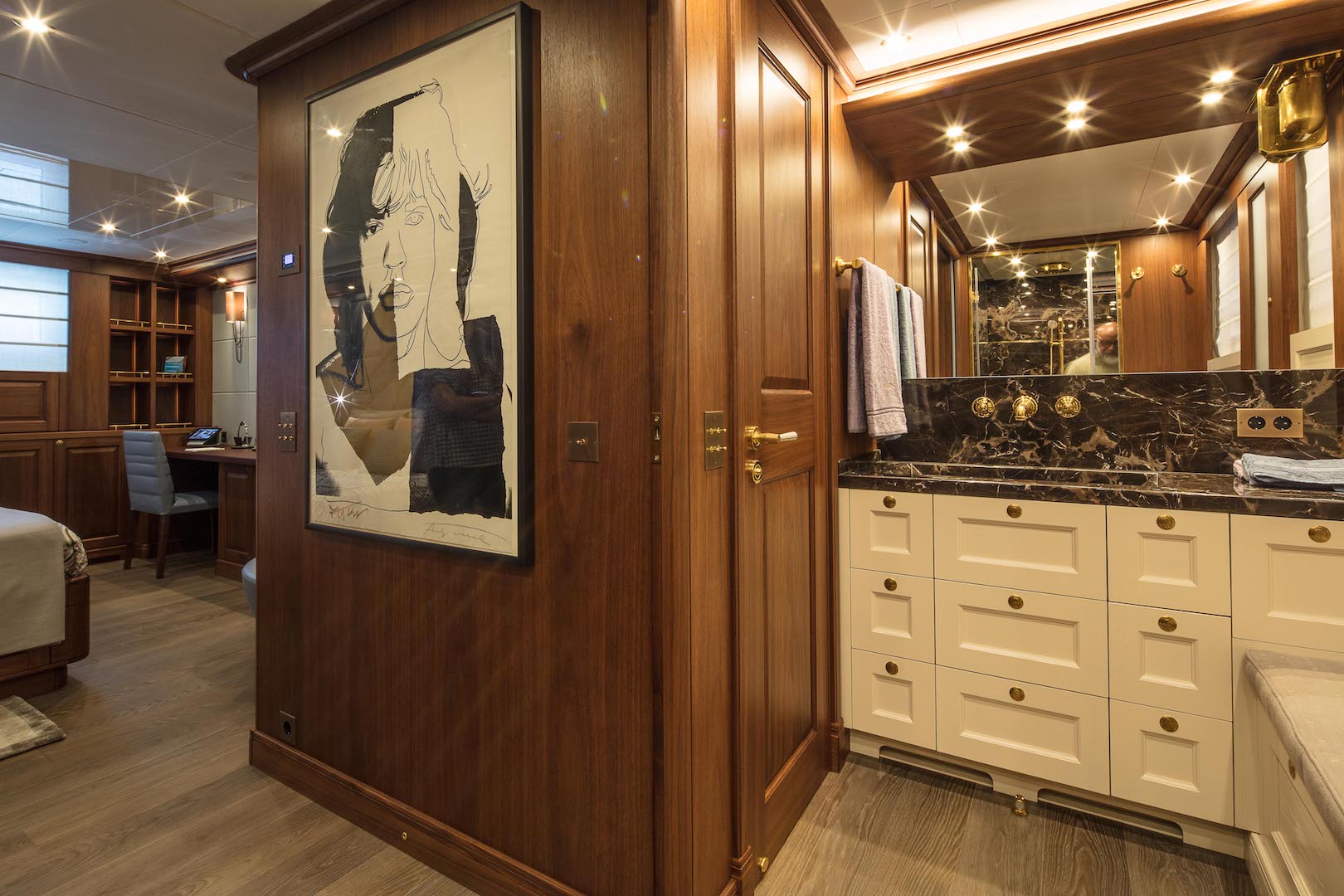 GALEO features some notable customisation including those in her design as well as in the functionality. One of the features is the extended height now measuring 2.18 metres, which included the extortion of the height of all doors and windows. The technical aspects of the yacht, however, have been left unchanged and include a 12mm steel hull cupronickel piping, independent rudders, automatic generator parallel (3 generators), electric fins stabilizers, as well as wastewater treatment systems for black, gray, and bilge waters that have been adapted from the world of work ships and designed to be used 24/365.