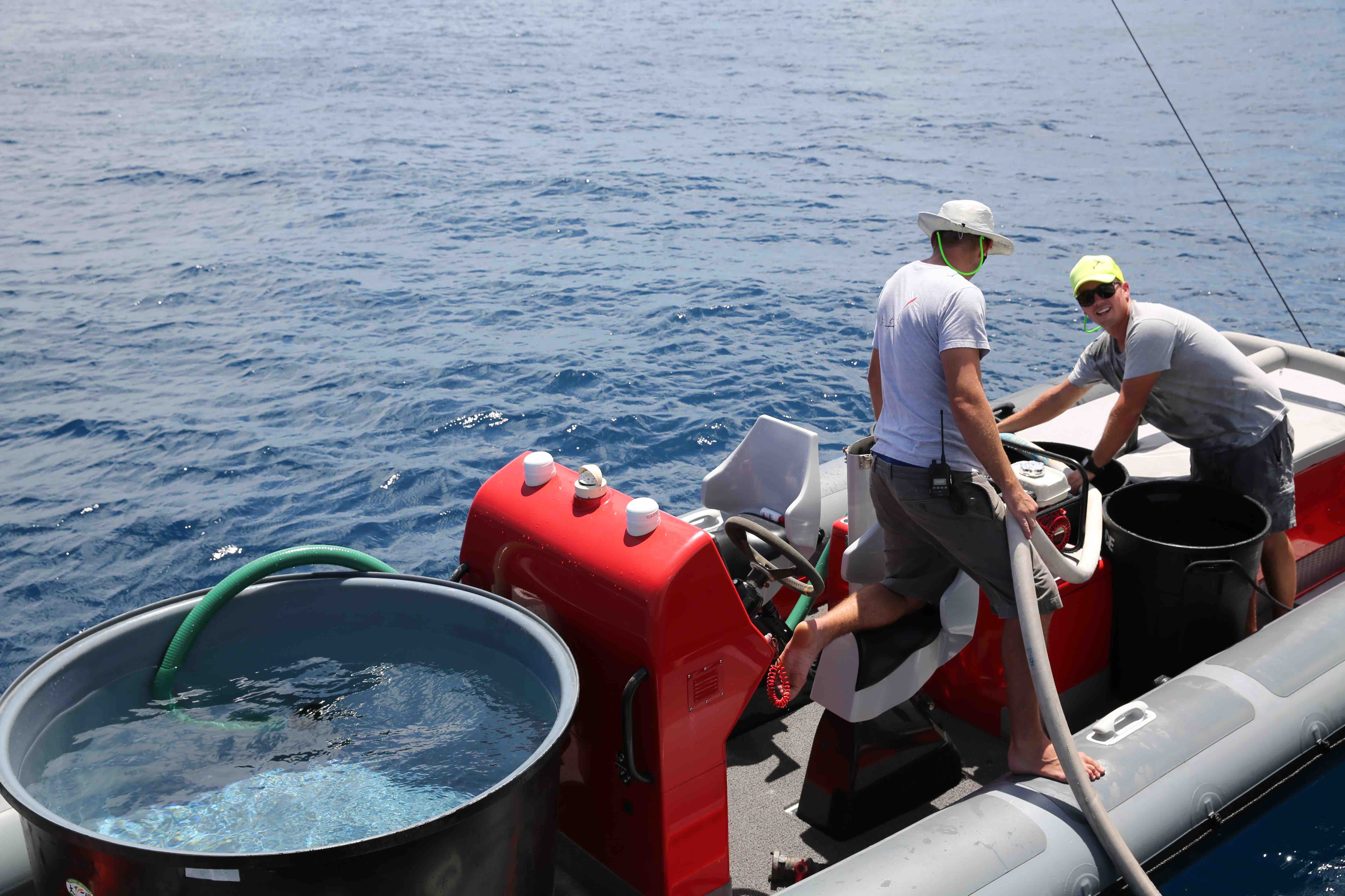 Filling the tenders of Dragonfly superyacht – Image credit to Captain Mike Gregory
