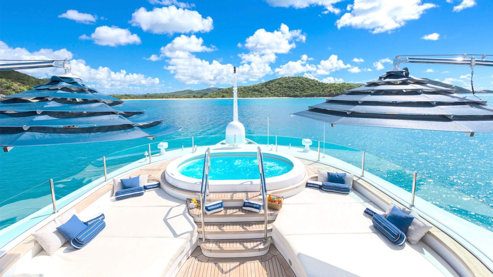 Cruise the Caribbean and the Bahamas in luxury this winter aboard the 59m Benetti ANDIAMO. Still available for the holidays, this exceptional yacht can accommodate 12 of your nearest and dearest across 6 spacious cabins. She was launched in 2009 and refitted in 2017, Patrick Knowles is responsible for the beautiful interior décor, and a collaborative teaming between Benetti and Stefano Natucci oversaw the exterior styling.
