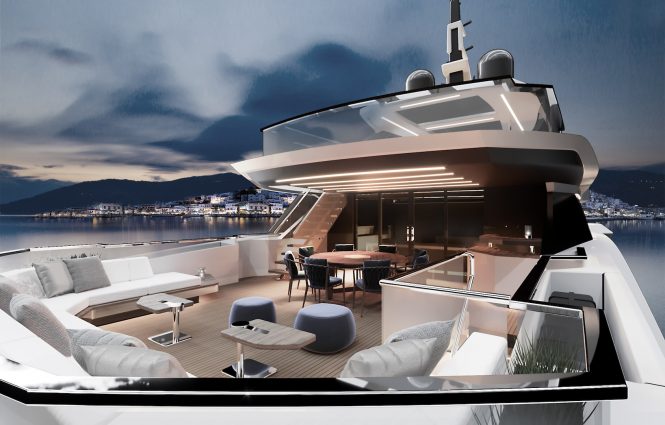 Built with young and modern yacht owners in mind, the emphasis has been placed on lifestyle living with an abundance of sun bathing and dining areas.