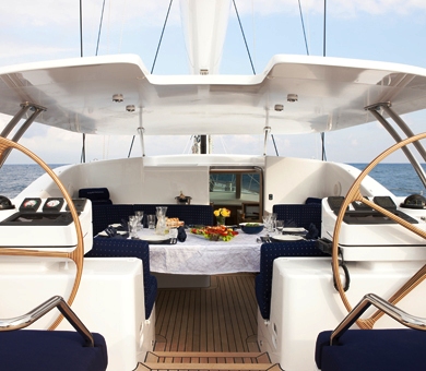 Sailing yacht NOSTROMO has a beautifully presented cockpit ready for alfresco dining and lazy summer days out in the Mediterranean sun – perfect for family holidays together or some peace and quiet on your own.