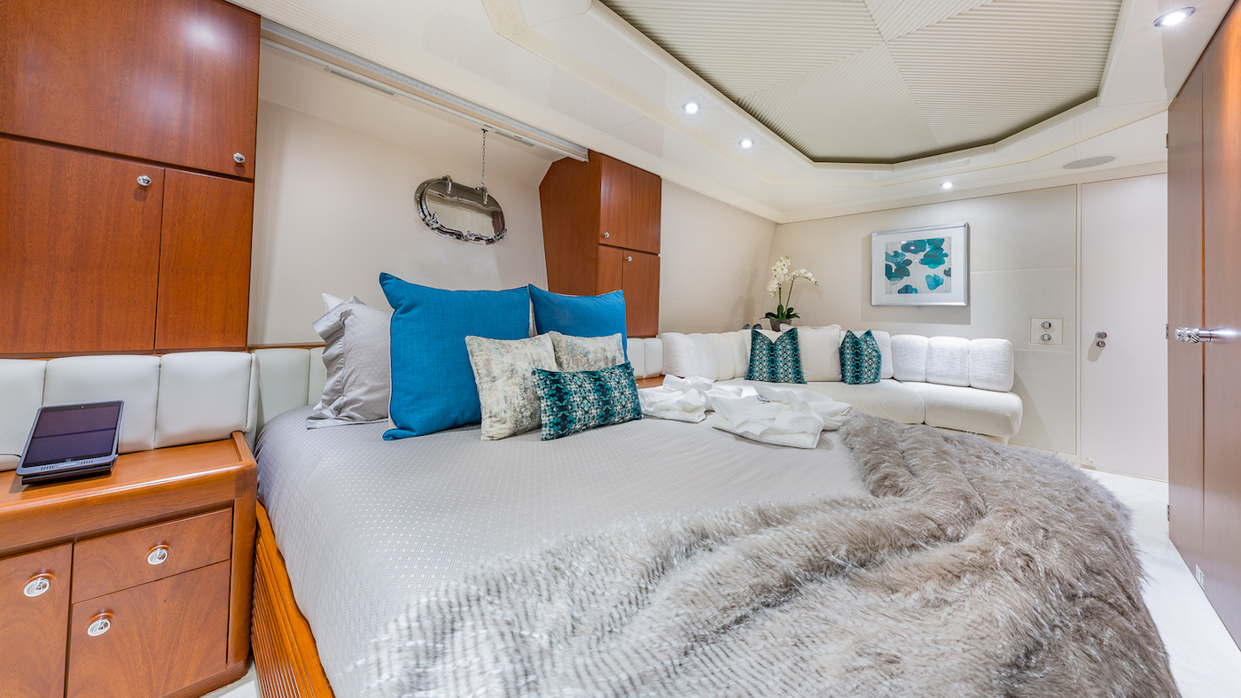The accommodation sleeps a maximum of 10 guests over 5 beautiful en-suite cabins: 1 Master suite, 2 double cabins and 2 twin cabins. The crew of 8 will take care of every detail, so you and your group can spend time in paradise without a care in the world.