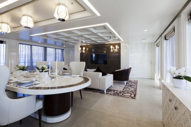 Guests are treated to lavish luxuries on the lower deck, where the swim platform and beach club lead through to the spa area, which has a side terrace for fresh air and cooling off after spending time in the hammam and resting after a massage.