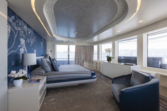 The main deck hosts the full-beam Master suite, and guests staying in this light and airy room will savour the port-side private balcony, the indoor lounge and the massive en-suite bathroom with private tub.