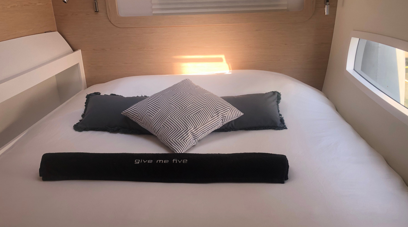 Up to 10 guests can remain on board while cruising, and the overnight accommodation sleeps 8 in 4 en-suite cabins. The talented crew includes a kite surfing instructor for a Captain, and both he and the deckhand have experience as regatta managers for multi-hulls.