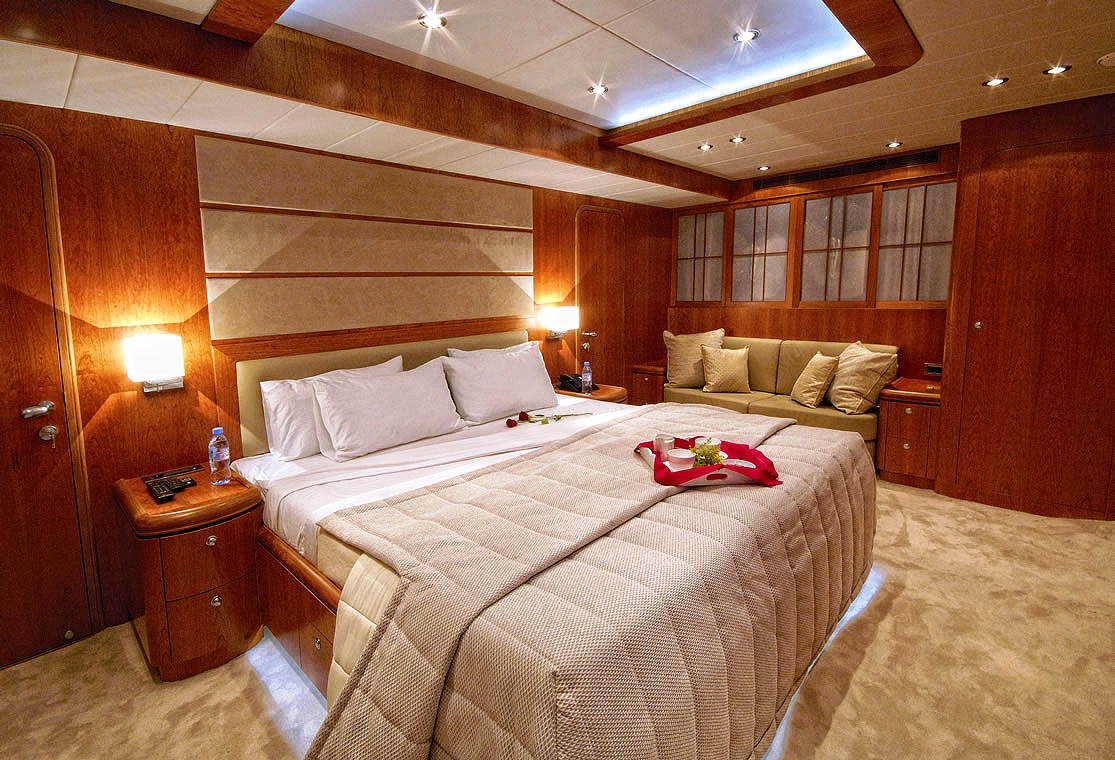 The accommodation sleeps up to 10 guests over 4 en-suite cabins: 1 Master suite, 1 double cabins and 2 twin cabins, each with a Pullman berth. The professional crew of 4 will ensure that everyone on board is well taken care of throughout the charter.