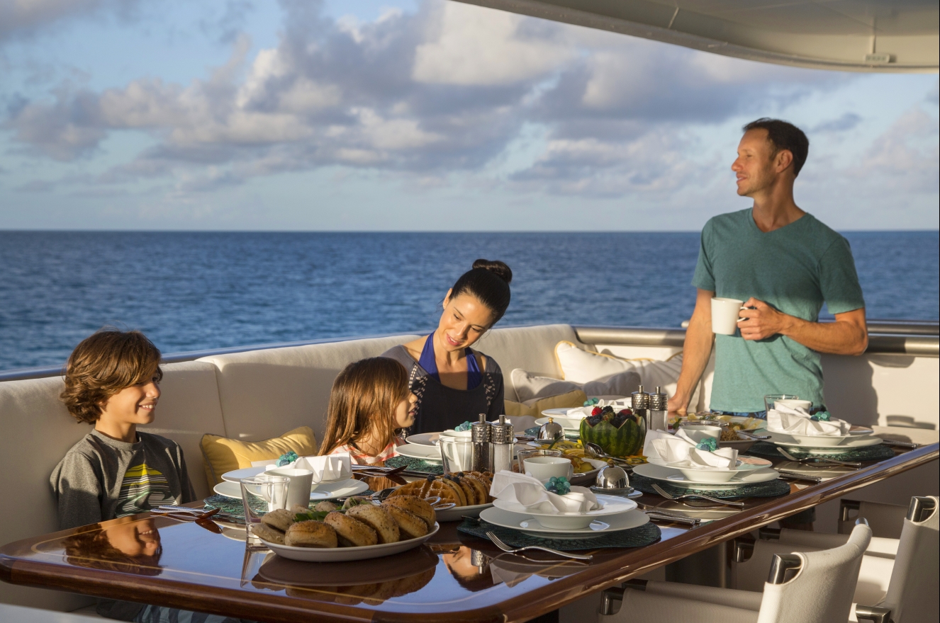 Host your parties on the upper deck aft, where the plush sofas and armchairs are positioned to provide the best views while sipping cocktails and watching the sunset. As the evening progresses, head inside to the skylounge for a cosy night and intimate conversation with guests who still have energy to burn.