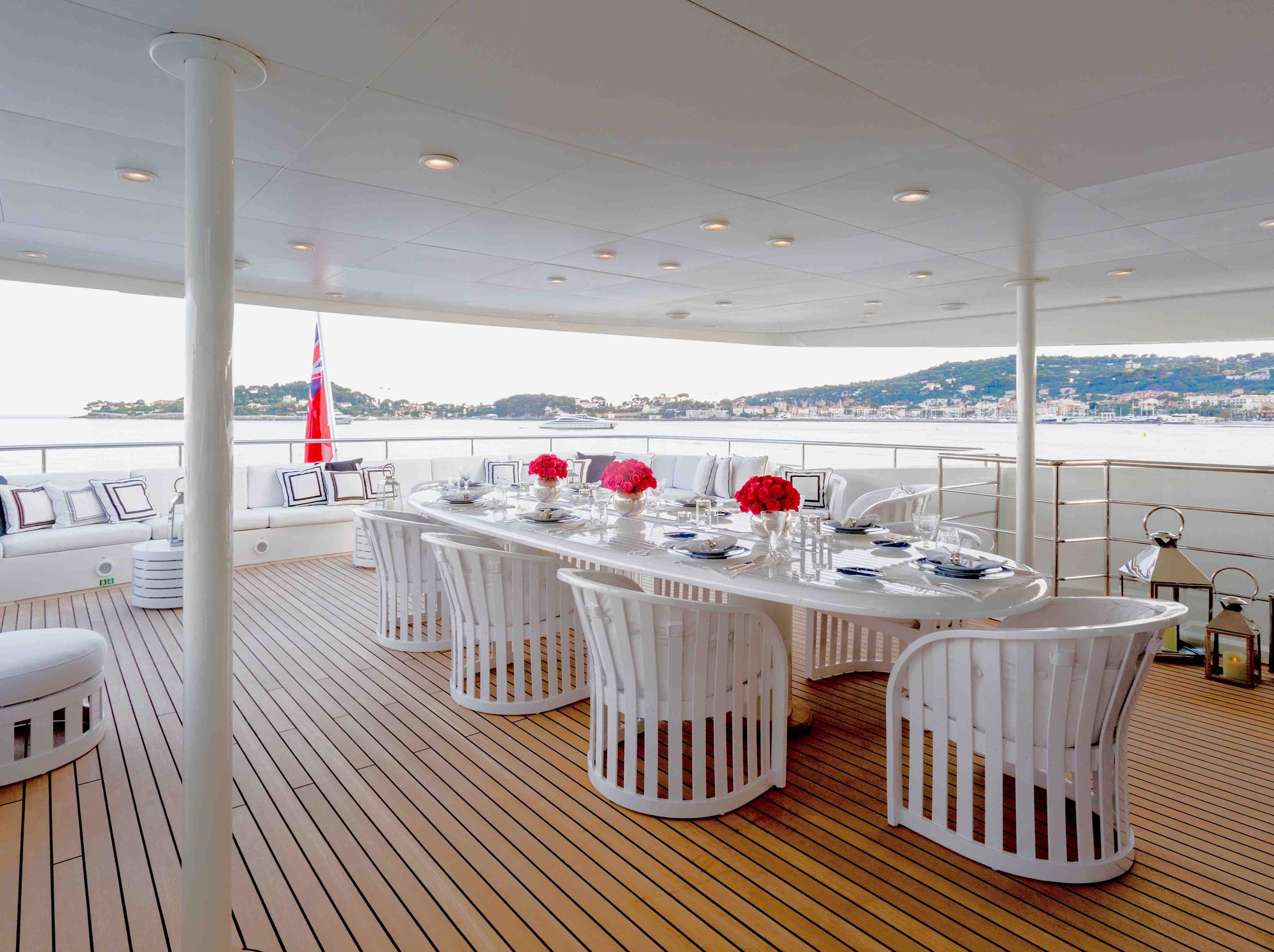 For sophisticated alfresco dining, the upper deck aft is perfectly suited to celebrations or informal meals in style. Dine at sunset and watch the Italian Riviera take on a very different magic at night, which can be enjoyed from the seating along the stern.