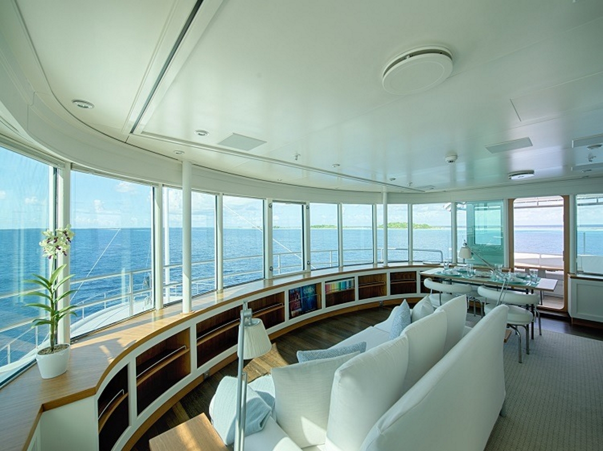 Separate to the main salon, the formal dining room offers a timeless environment for marking special occasions and intimate meals between 10 guests. Alternatively, the upper deck provides a place for everyone to dine alfresco in the shade while watching the action of the Asia Superyacht Rendezvous Cup in Phuket, or the watching the sun sink behind the Andaman and Nicobar Islands.