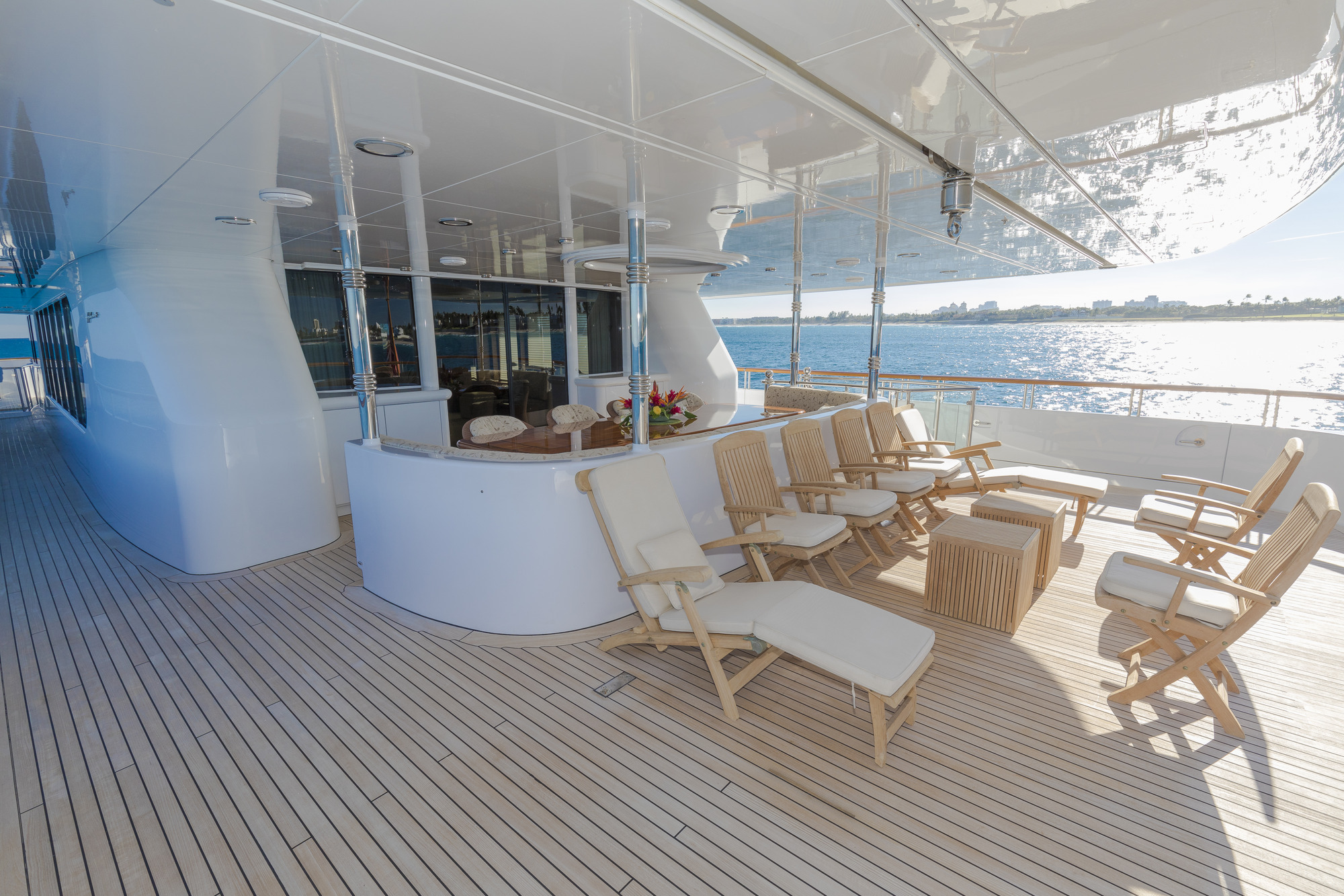 Guests situated in the plush sofa and arm chairs or the formal forward dining area have an excellent choice of beverages from the aft bar, which is ideally situated to serve guests dining alfresco on the main deck aft.