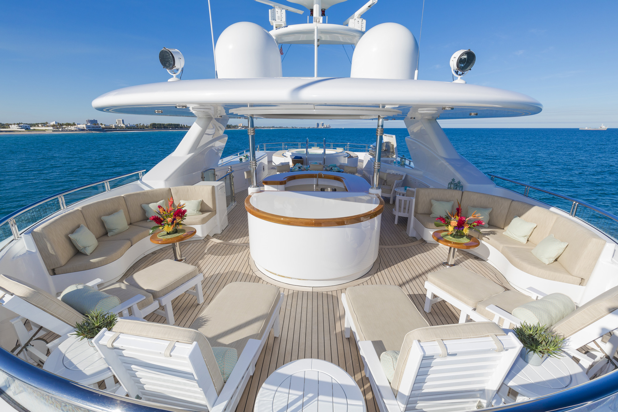 Whether you intend to have a holiday with close friends and family or party the night away among a huge crowd, the sundeck is the best place on board: as well as a bubbling forward Jacuzzi, there is a generous central wet bar to serve guests lounging in the shade or lying back on the sun loungers.