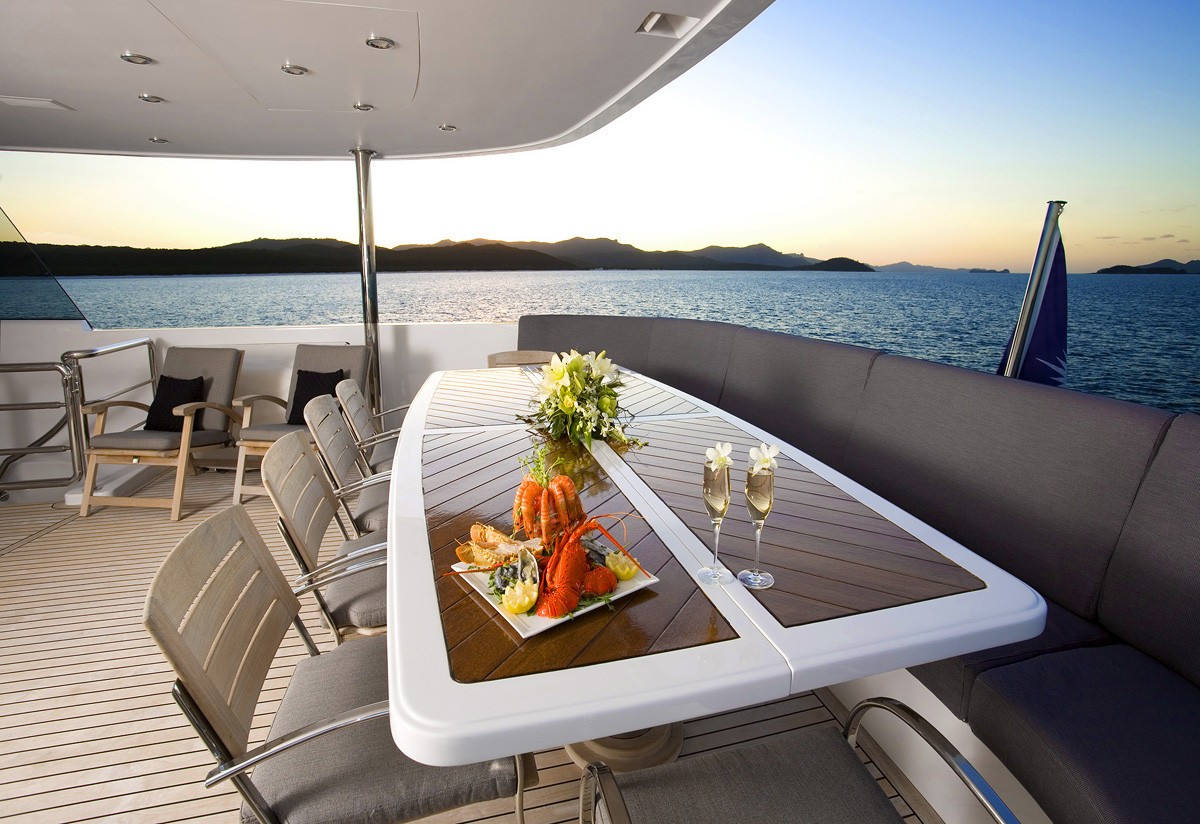 On the sundeck, guests can sink into the Jacuzzi and take in the magnificent port views, or settle into the forward seating area for an alfresco meal in the sunshine.