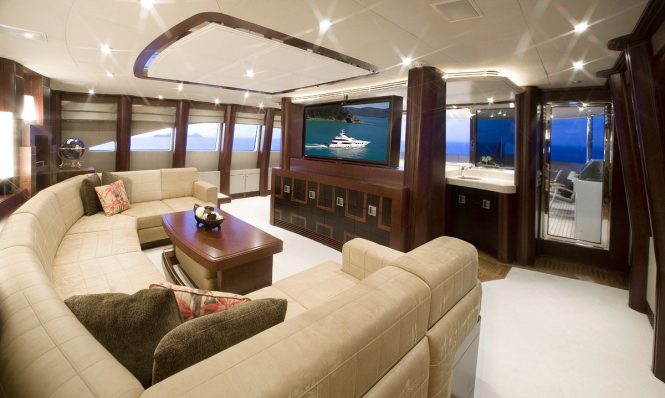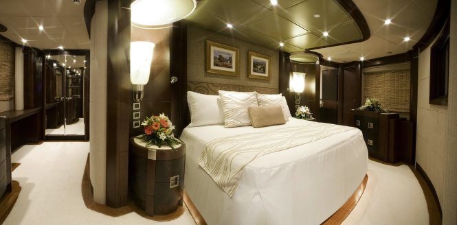 The accommodation is designed to sleep up to 9 guests across 4 cabins: 1 Master suite, 1 VIP stateroom, 1 double cabin and 1 twin cabin convertible to a double. The professional crew of 8 will ensure that everyone on board is well taken care of throughout the journey.