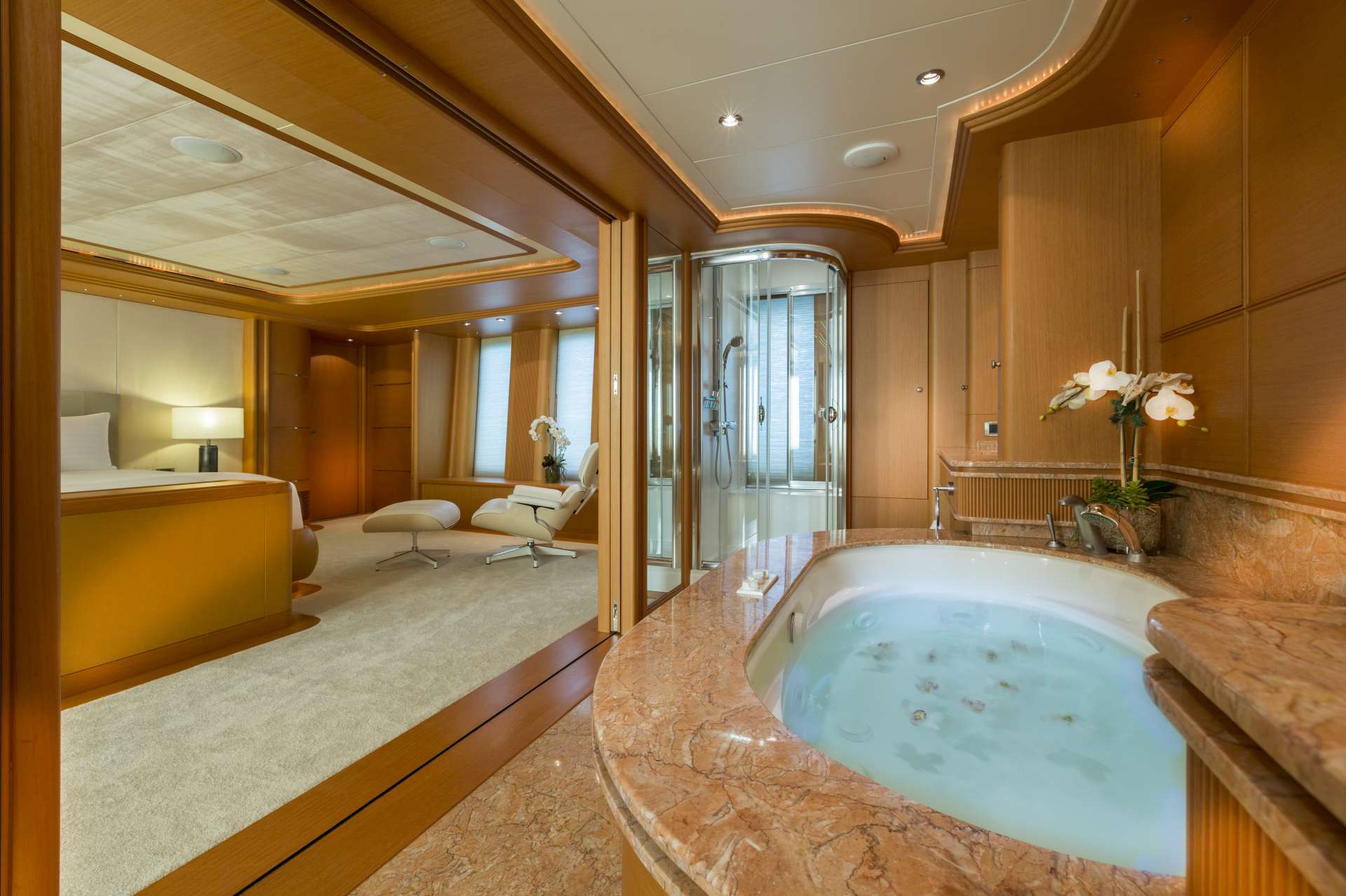 The accommodation sleeps up to 12 guests across 6 beautifully appointed cabins: 1 Master suite with an en-suite bathtub and shower, 1 VIP stateroom with spa tub and shower, and 3 double cabins and 1 twin cabin all with en-suite facilities.
