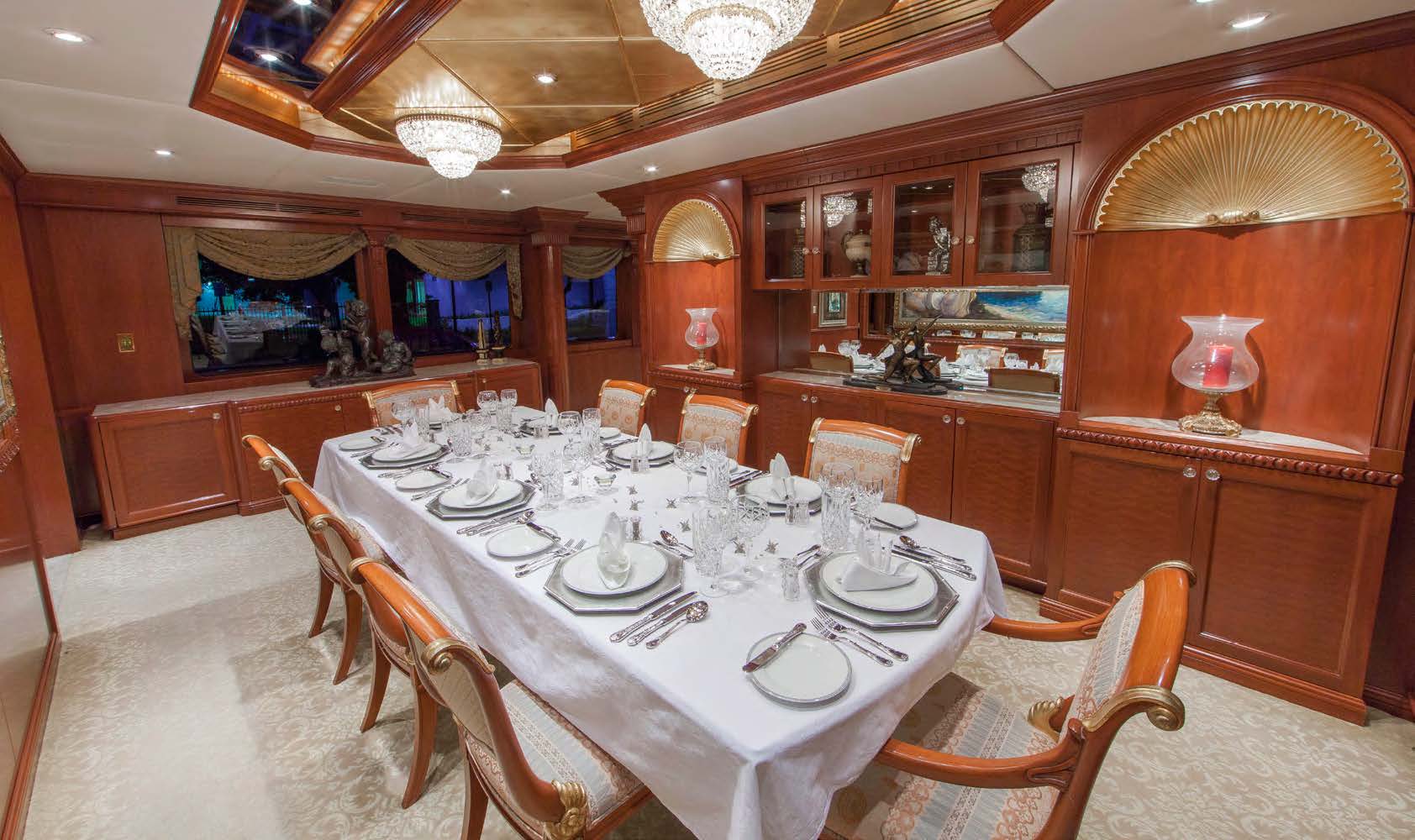 Celebrate your special occasion in the formal dining room, separated from the main salon to create an intimate atmosphere while dining on a delicious three course meal.