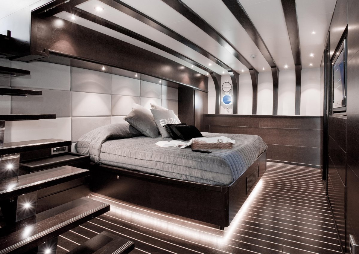 The accommodation layout is designed to sleep up to 11 guests over 5 cabins: 1 Master suite, 3 VIP staterooms and 1 triple cabin. A crew of 4 will ensure that every guest receives a stellar service throughout the charter.