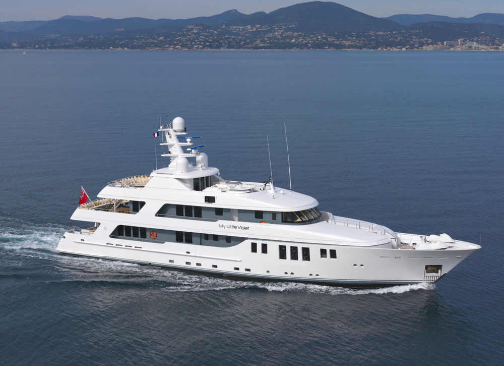 Launched in 2006 at the prestigious shipyard Abeking & Rasmussen, superyacht MY LITTLE VIOLET features classic exterior lines and modern interior styling by Reymond Langton Design. Some opulent materials were used in the creation of the unique indoor decor, which features silk, leather and suede.