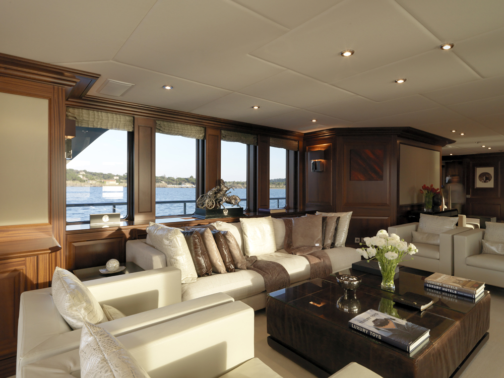 One of the key features of the yacht is her winter garden area, which is ideal for relaxing on a huge lavish sofa or daybeds. Lounging spaces across the yacht are available in the sun and the shaded areas providing total comfort to the guests.