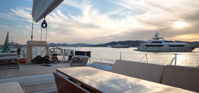 Above deck, the cockpit is designed to provide a space for all-day outdoor living and alfresco dining, seating all guests together for an atmospheric meal in the sunshine or under the stars. The foredeck is ideal for sunbathing, with plenty of space for guests to stretch out and socialize or dry off after playing in the water.