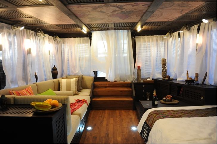 While you charter through some of the most idyllic locations in the South Pacific, relax in the atmospheric salon replete with Indonesian artwork and detailing from the ceilings to the floors. Large windows flood the interior with natural light during the day for group socialisation around the sofa or games at the tables.