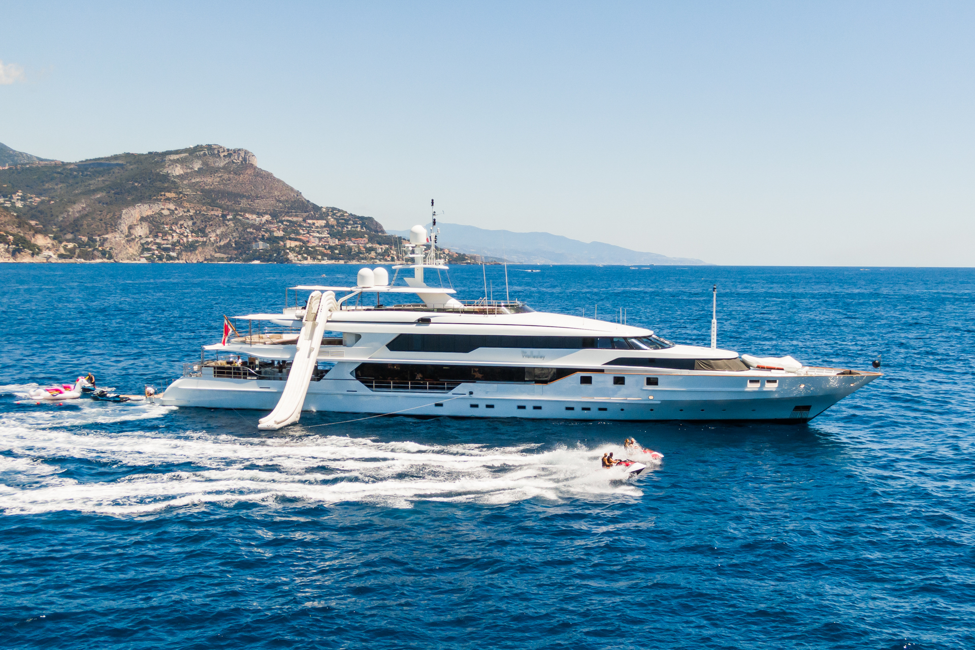 M/Y THE WEELESLEY is a tri-deck designed yacht with ample outdoor living. Her shaded aft deck features a large lounge space with partial shade, this leads to an extended swim platform, beach club with seating and array of water toys. On the upper deck, charter guests can dine alfresco and soak up the West Mediterranean sunshine on the fitted sunbeds. The ideal sundeck tops off the luxurious exterior living, complete with sun loungers, BBQ, cocktail bar, deluxe jacuzzi and large sunbed.