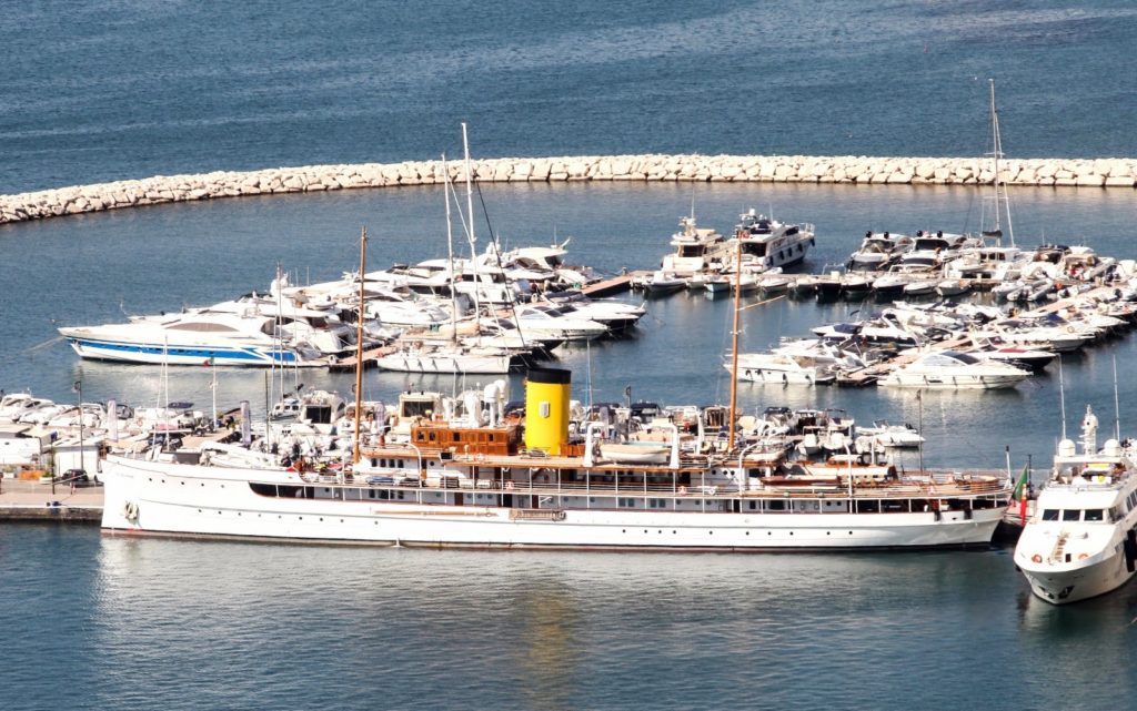 At the weekend 100m (325ft) superyacht CHRISTINA O arrived at Stabia Main Port in Casellammare, Italy for the summer and berthed alongside the other wide variety of charter yachts in residence.