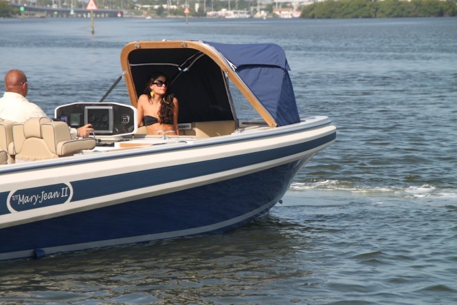 The low profile console equipped with carbon fibre panels, a full POD featuring complete digital instrumentation and electronics are the latest in technological advancement. A slide drawer refrigeration system for cold-dry beverages onboard and an owner’s locker compartment sets this tender aside from all others.