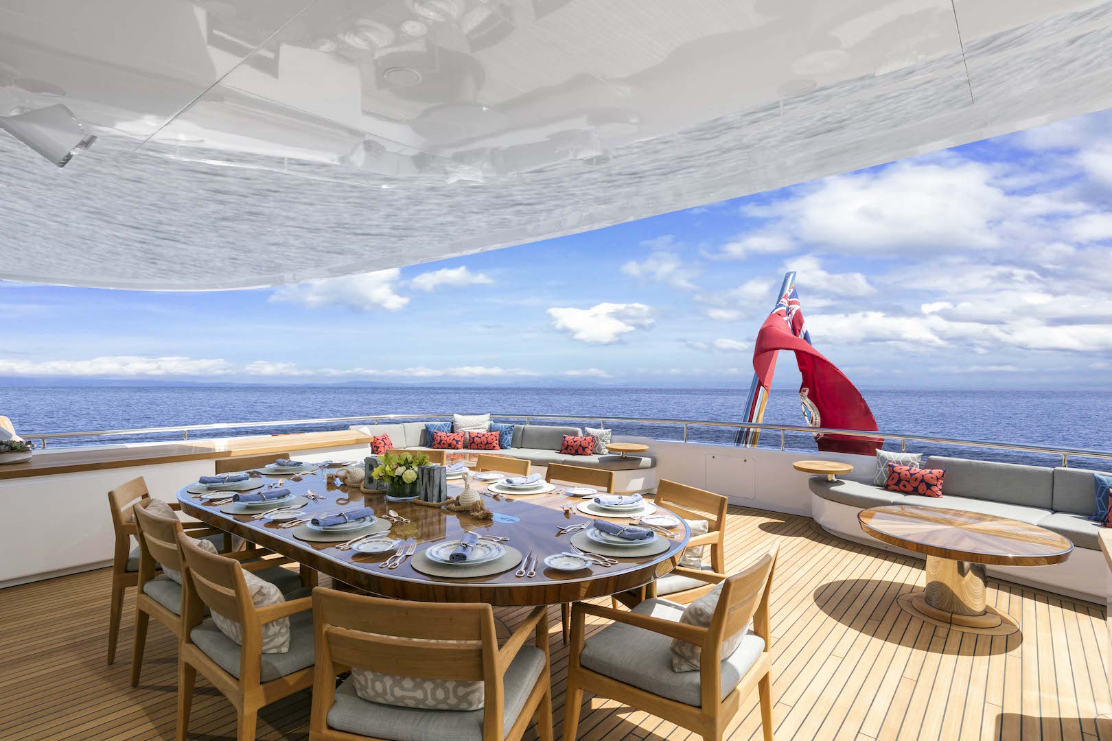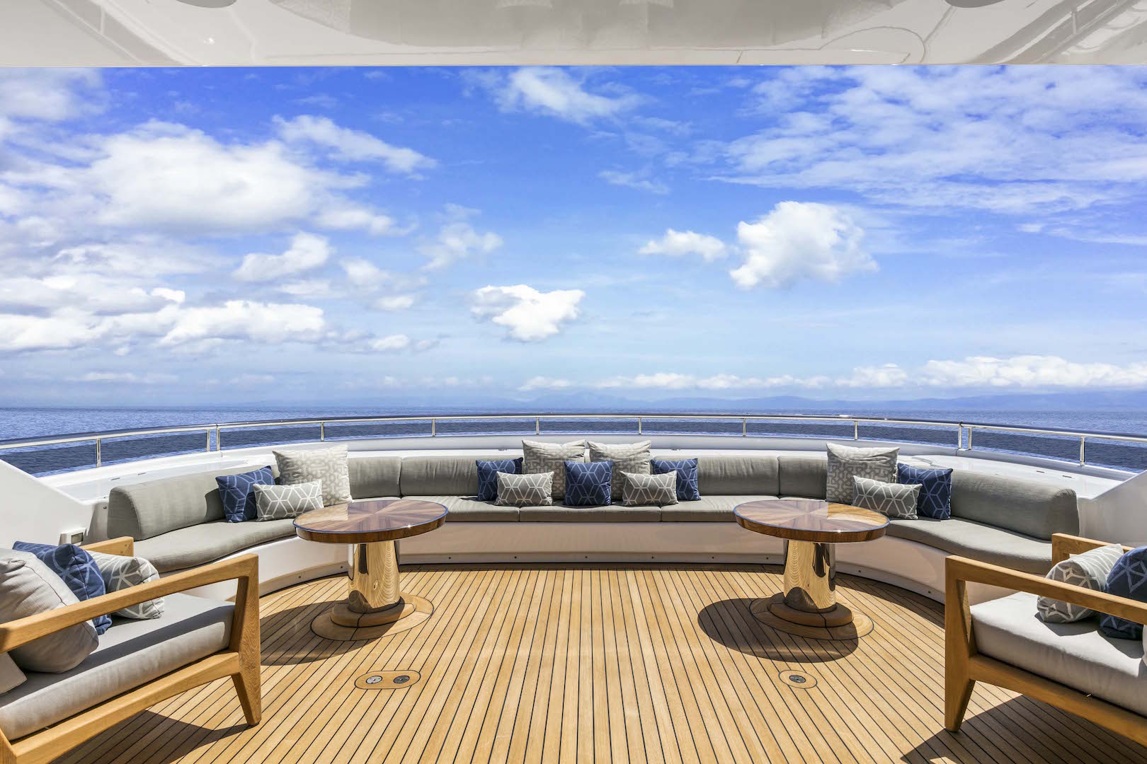 Spend all day outdoors with everything the sundeck has to offer: Rest and recuperate in the forward Jacuzzi then dry off on the sunpads before dining alfresco in the shade with a cocktail from the bar. The stern is fitted with an extensive seating area designed for comfortable socialising day or night.