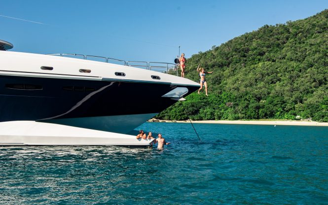 Enjoy 9 days between December 18thand 27that a very special date aboard the 35m luxury power catamaran SPIRIT while cruising the beautiful Whitsundays of Australia. Launched in 2005 by New Zealand Yachts Limited, she features exterior styling by Bakewell – White Yacht Design. With a refit in 2016, this stunning yacht offers accommodation for up to 12 charter guests, over 5 cabins.
