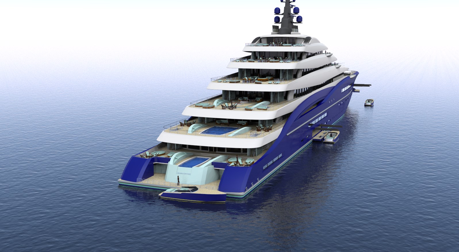 CharterWorld has approached Christopher Seymour to talk about his latest design, the huge 200m DOUBLE CENTURY yacht. Currently under development, the breath-taking giga yacht DOUBLE CENTURY concept can be characterized by strong presence, thanks to sculpted windows with a striking sheer line and a magnificent superstructure.