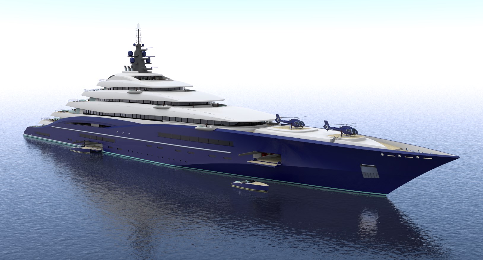 Although super yacht DOUBLE CENTURY concept comes in at 200m, she can be scaled down to 185m without losing decks or scaled up to breath-taking 225m.