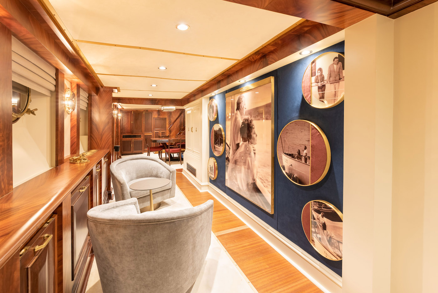 The interiors are simply stunning and blend traditional wood panelling with both contemporary and timeless furnishings to create a stylish and welcoming atmosphere. Ambient lighting ensures guests feel cosy on evenings spent inside, while the staterooms are a comfortable oasis, each uniquely decorated and featuring deluxe ensuite bathrooms.