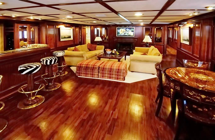 Moreover, classic yacht LADY K II (ex Lisboa II, Princess Tanya) also boasts a vast and elegant full-beam main saloon, as well as an additional bar and dining area, situated in the upper deck saloon. Onboard is a gymnasium, sauna, beauty salon, and a jacuzzi on the upper deck.