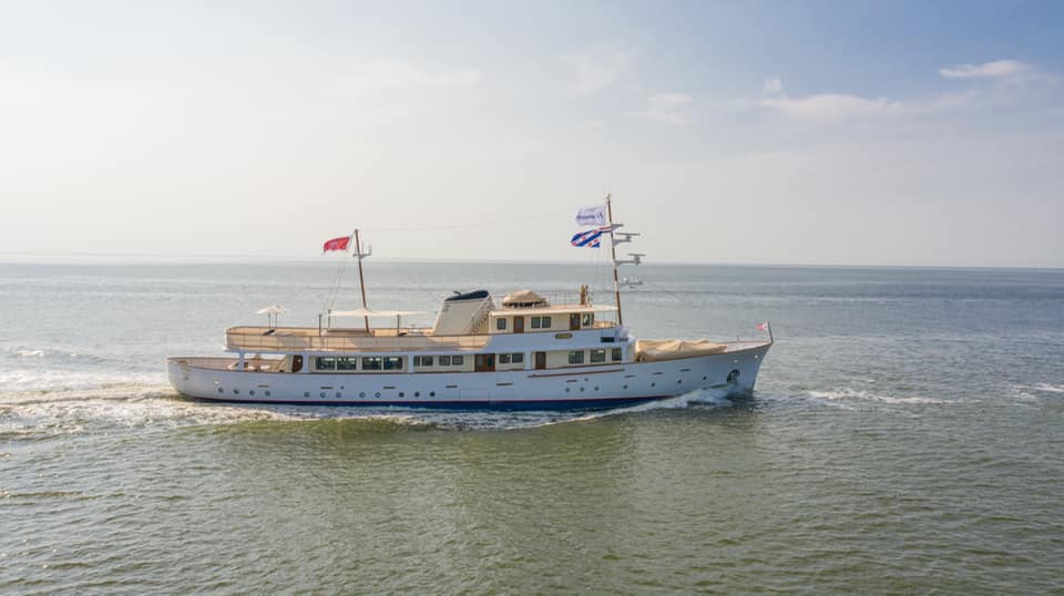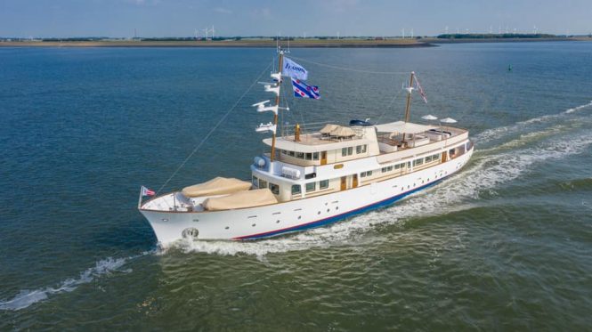 The 42m/138ft motor yacht was originally built by Dutch shipyard de Vries Lentsch and boasted state-of-the-art features for her time, such as an on board telephone and radar system.