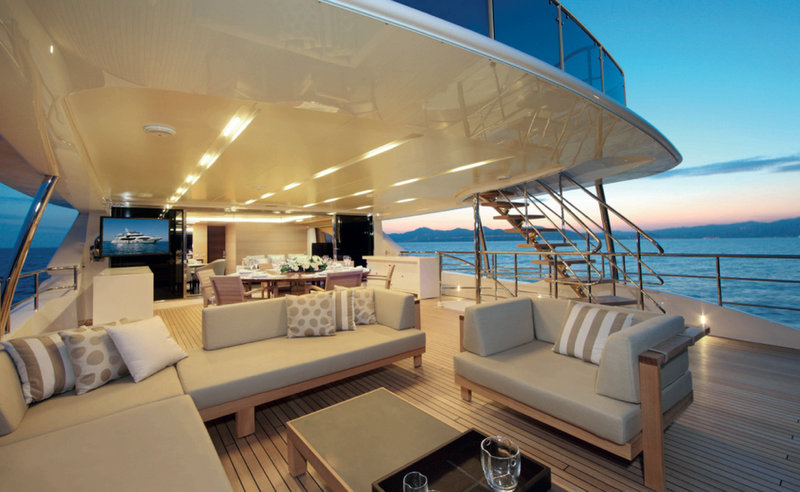 One hundred square meters of sun deck give all guests comfort and privacy even above deck. Divided into four zones, the area is also equipped with a day-head, giving complete independence from the interior areas.
