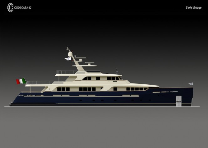 Codecasa yacht builder from the Italian town of Viareggio, introduces their new 42 metre super yacht Codecasa 42 with a Hull n. F73. The new project of the historical Shipyard of Viareggio, the Codecasa 42m motoryacht from the Vintage Series, follows known paths to mark out new roads and turns towards the past, not with the melancholic attempt to celebrate something that is lost, but rather, with the purpose of recovering a timeless style and to find in it the push to jump into the future.