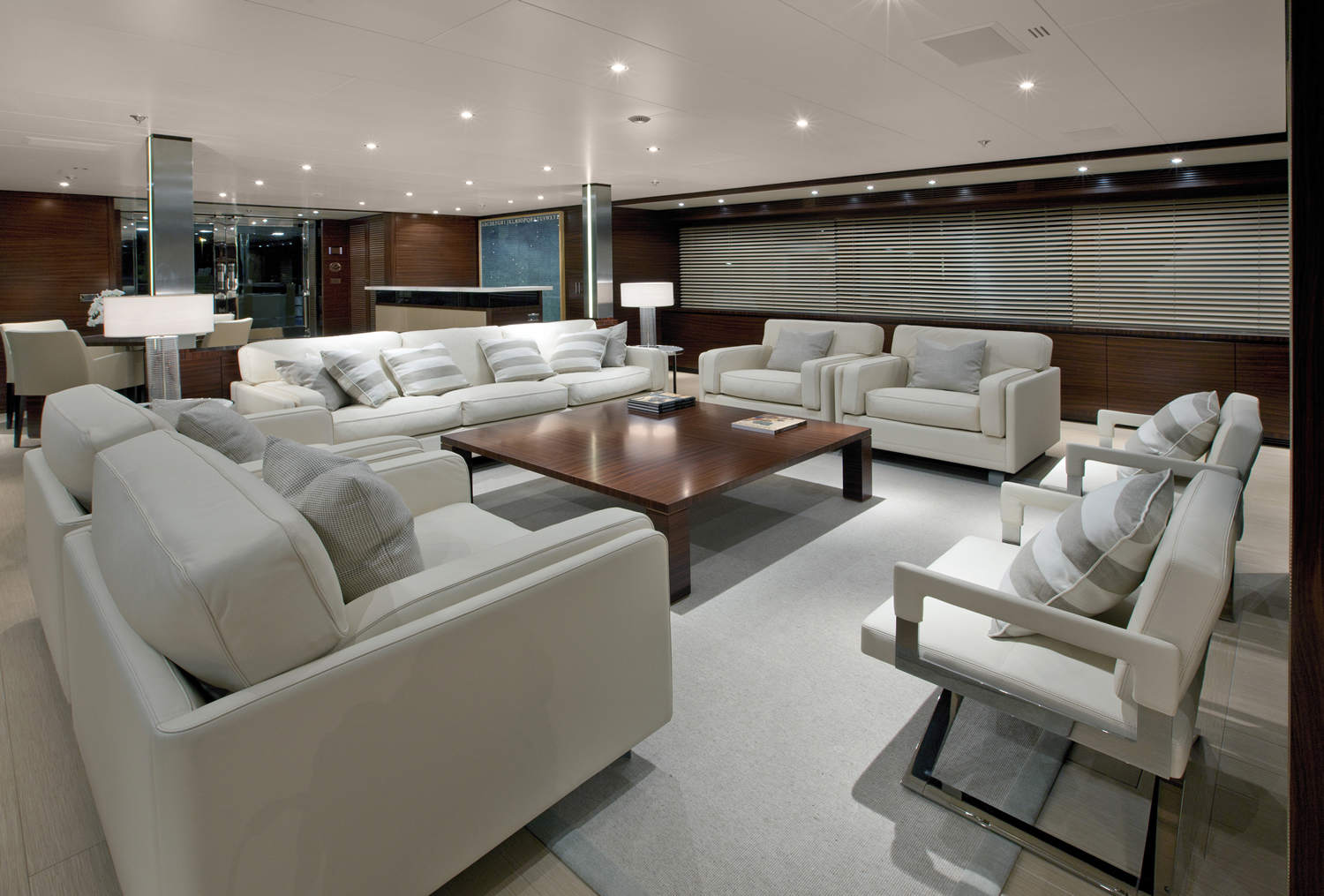 Designed by Della Role Design, the lovely interiors of luxury yacht Aldabra can sleep up to 12 guests  in maximum comfort, providing them with 6 magnificent cabins. These include a spacious master suite and five guest cabins. Guests are looked after by a crew of 8 members.