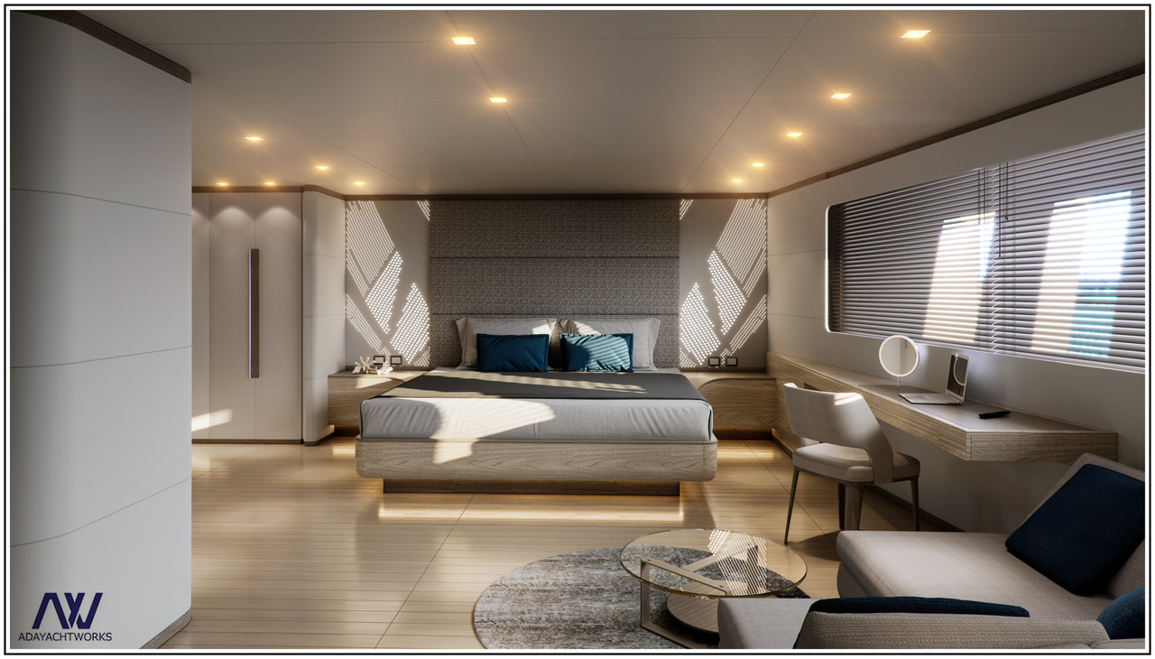The accommodation will sleep a maximum of 12 guests across six lavish en-suite cabins, of which there is a full-beam Master suite with an adjoining study, as well as a VIP stateroom