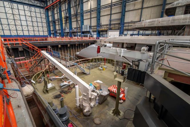 These interiors will be styled by British designers RWD, who have the unusual brief of medieval-themed warfare, added to which is a blend of British heritage and sleek modern styling. The design studio will also be responsible for her exteriors, which feature ample outdoor space on the aft decks and sundeck.