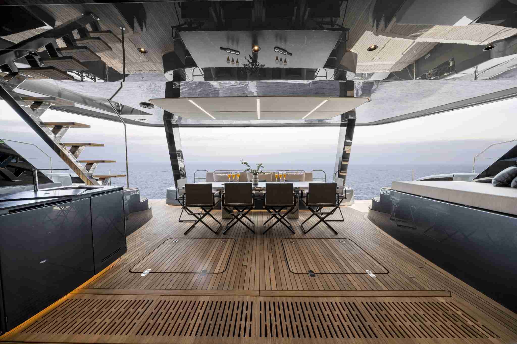 There is plenty of al fresco entertainment space including dining on the sun deck and aft cockpit, sunbathing on every deck and a hydraulic swim platform providing easy access to the ocean and selection of water toys.