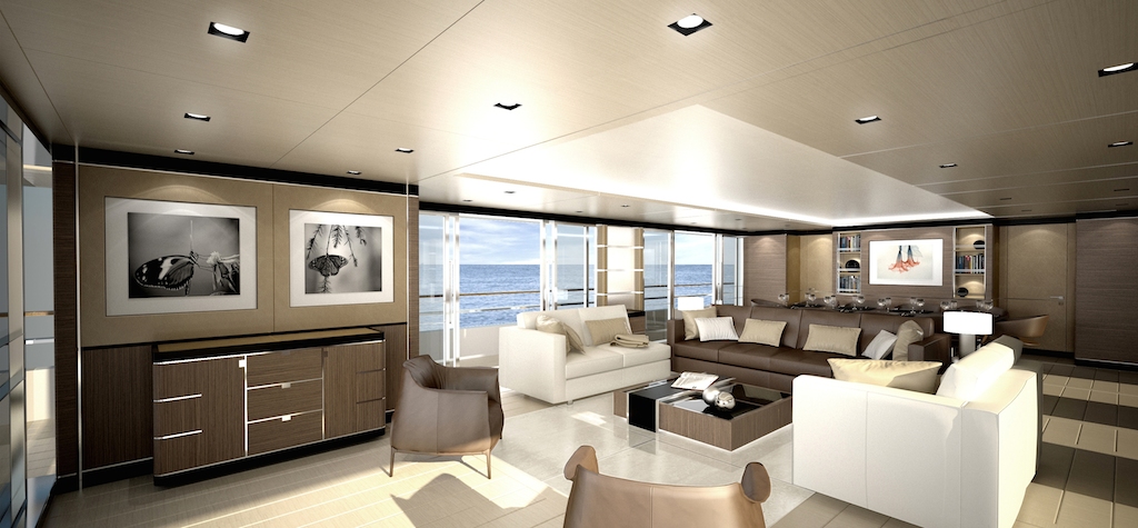 Luxury motor yacht project CONERO incorporates the most significant features that identify the CRN megayachts worldwide: a transatlantic range, designed and built to the highest of standards that are recognised around the world by the nautical industry (RINA and MCA), vast internal volumes and a balcony in the Owner’s suite. There is an extensive use of glass in the CONERO yacht, with large windows improving the quality of life aboard and guarantee constant direct contact with the nature.