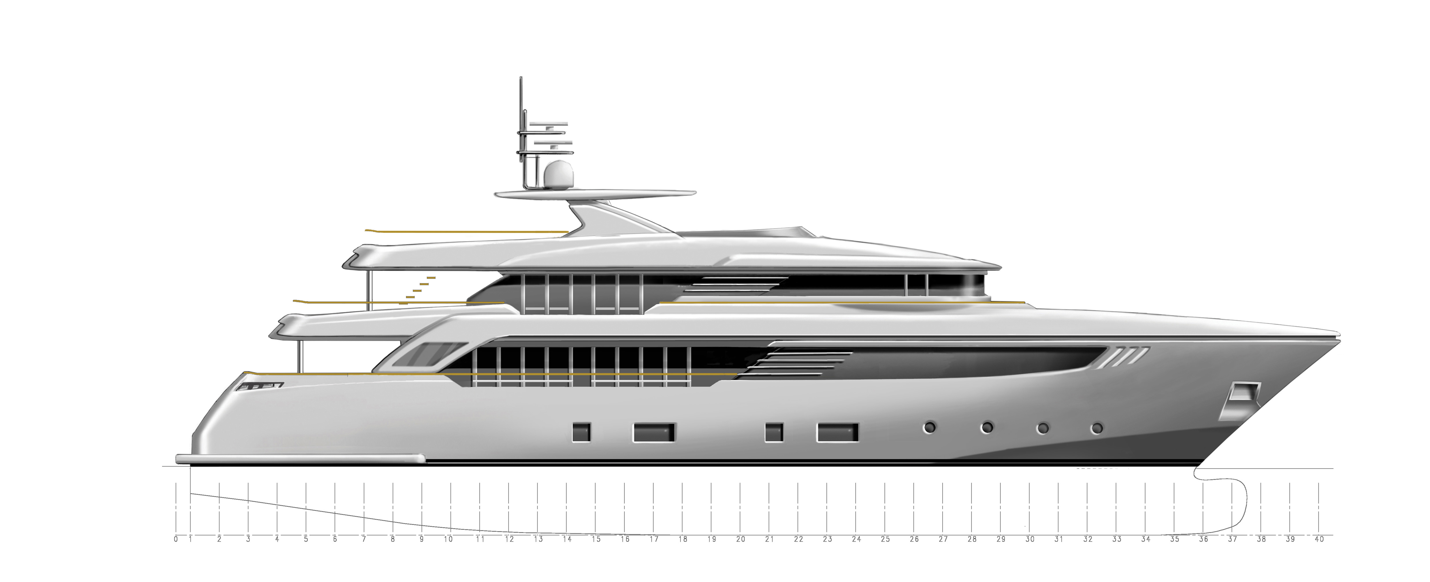 The Italian luxury yacht builder, CRN, part of the Ferretti Group, has unveiled interior renderings of the 40m CONERO yacht project, with naval architecture by CRN Engineering and design by Zuccon International Project. The 40m CONERO superyacht is a displacement megayacht with bulb, made in steel and aluminium.