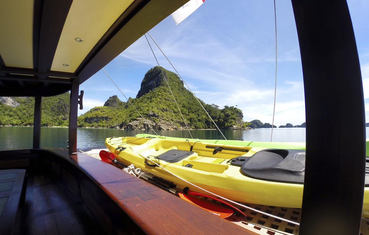 S/Y DUNIA BARU has beautiful teak decks, with plenty of area for socializing and unwinding. The main deck aft is shaded, dine alfresco, or sit back and watch the world go by in ultimate comfort. Her main foredeck has a built-in seating arrangement and plenty of plush bean bags and sunpads. On the upper deck, aft is the master stateroom private deck (optional), with a large sunpad and shade.