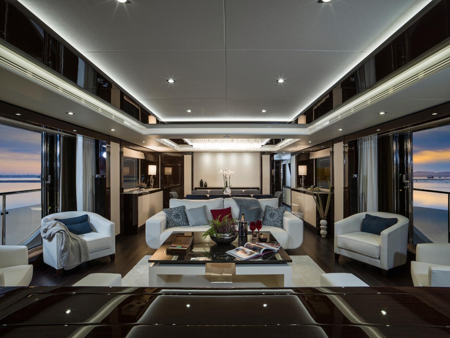 There is a wealth of opportunity to enjoy the sunshine while you cruise through the Balearic Islands or down the Cote d’Azur from Cassis to Cannes: The Portuguese deck is perfect for relaxing with reading material and spending time in each other’s company, while the sun pads and Jacuzzi towards the bow or the sun loungers and second Jacuzzi on the aft allow all guests to enjoy the best summer weather at the same time.