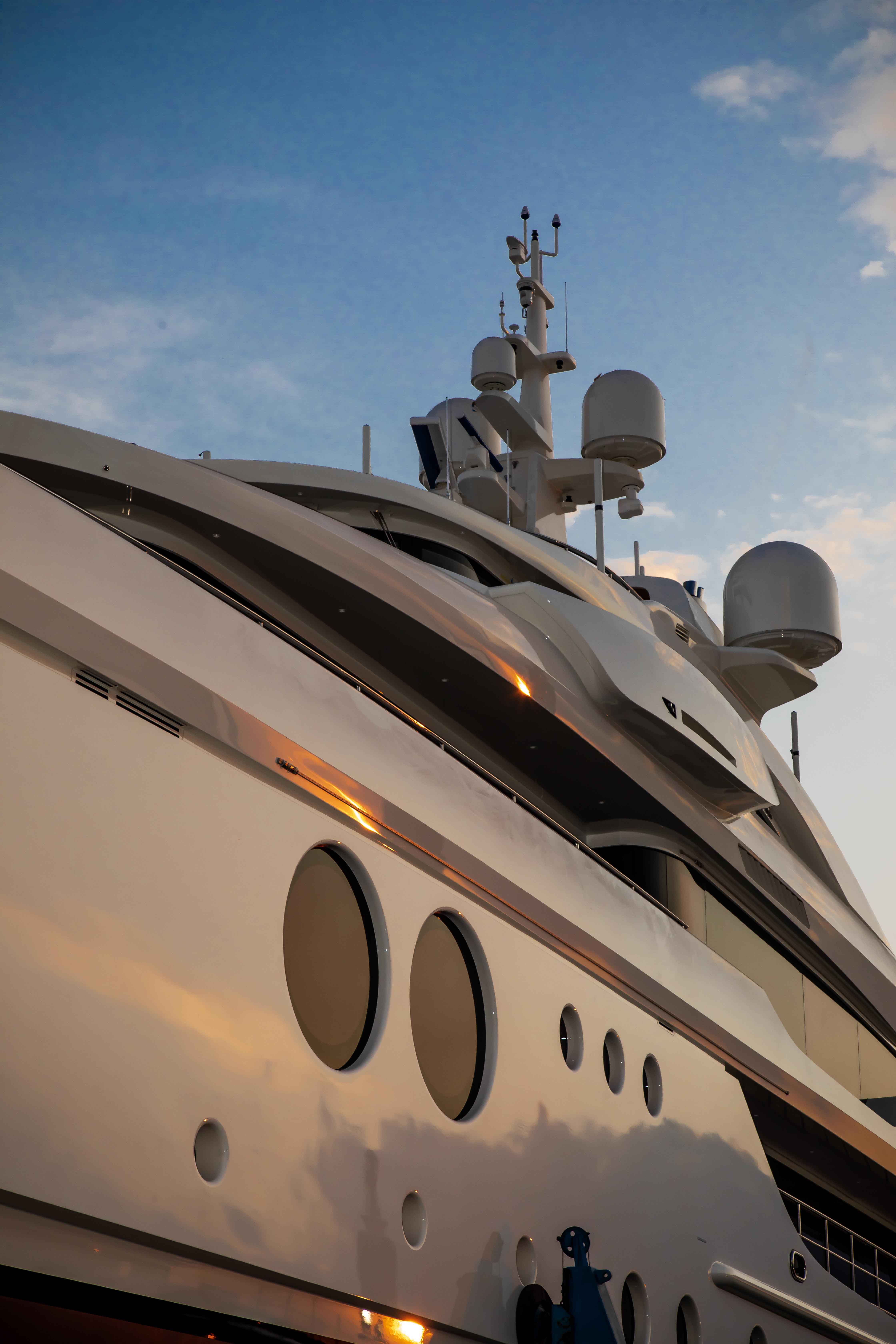 Large circular windows have become the signature feature, measuring almost 2 metres in diameter, allowing for plenty of sunlight to penetrate the inside of the yacht, including the vast main deck lounge as well as the lower deck cabins.