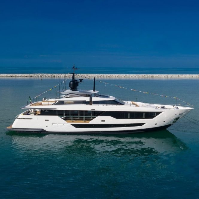 The Italian shipbuilder Custom Line has held the official launch ceremony of motor yacht JAG’B. She measures 32.83 metres with an exterior profile by Francesco Paszkowski. With 210GT and sleek profile, she is a beautiful yacht that can sleep ten guests in five cabins.