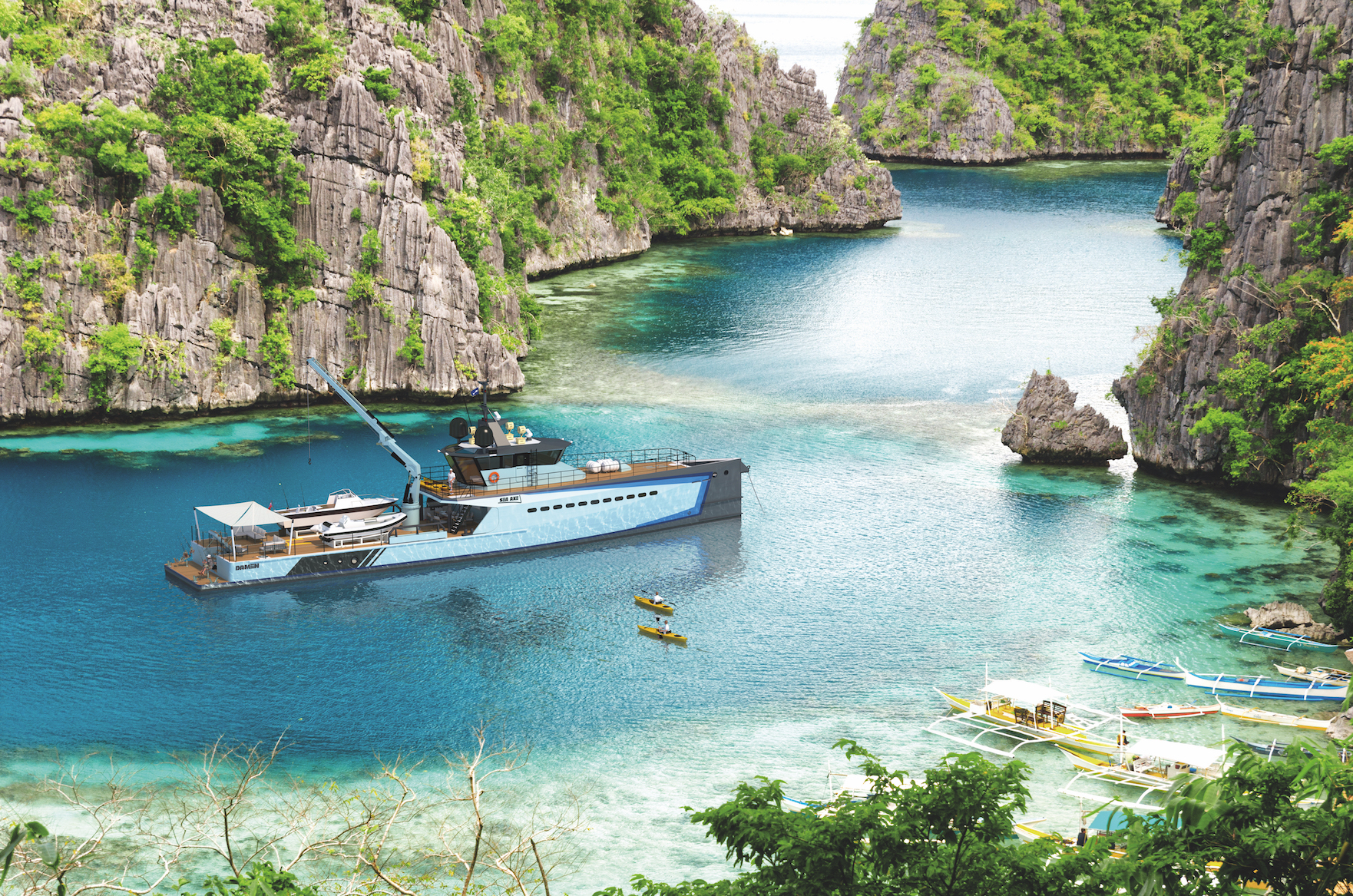 Damen found an opportunity on the market for such vessel, as clients requested superyachts measuring less than 40-50 metres, but still with as much storage space as other larger yachts would have. Hence, the new Adventure 4008 meets the new requirements of clients. This sport and adventure yacht features a 140 square-metre artificial teak desk for a helicopter, tenders, vehicles and toys.