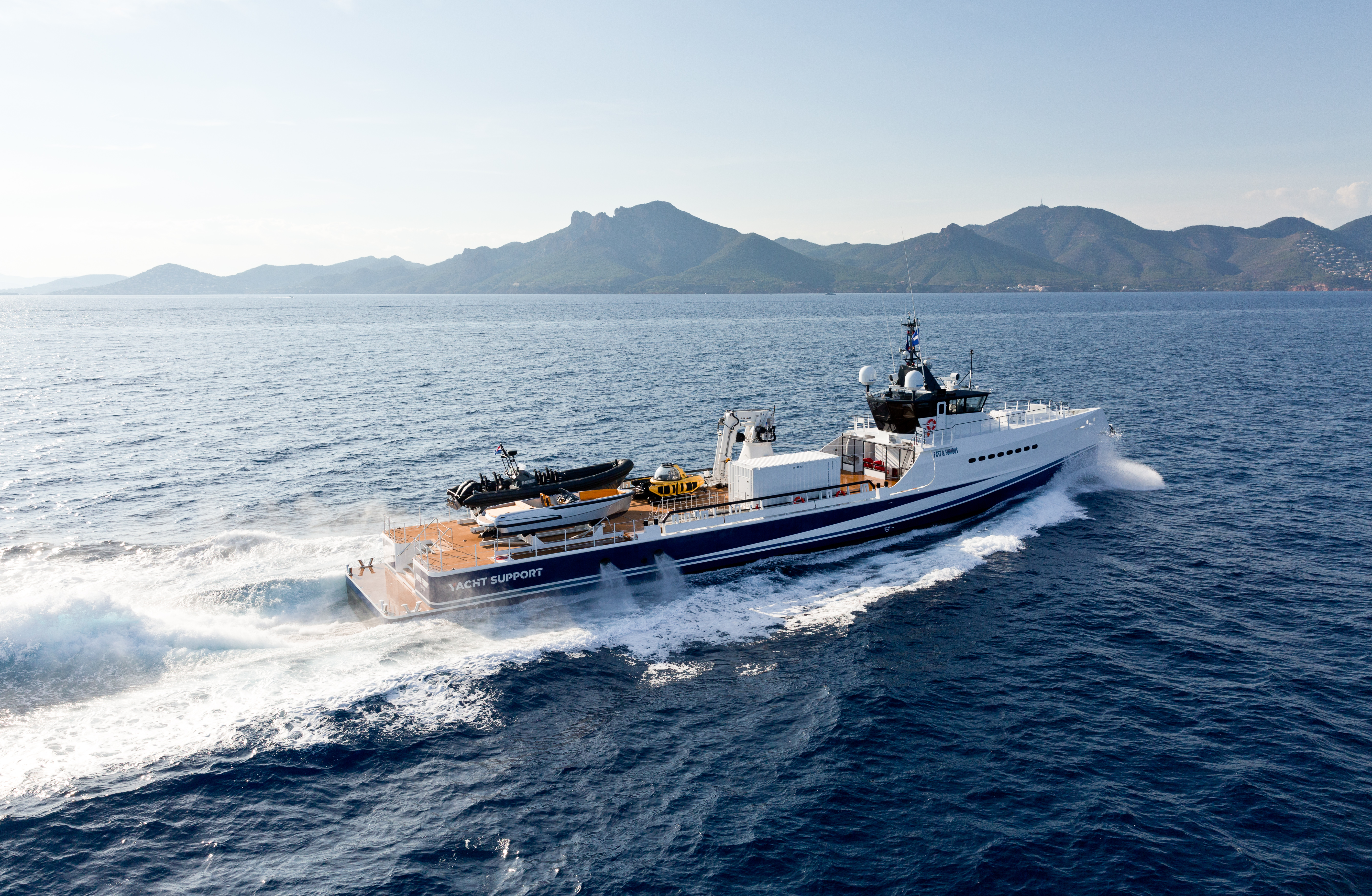 DAMEN is proud to announce the sale of 55m/181ft FAST & FURIOUS. This amazing support vessel was presented earlier this year at various yachting events, and gained of a lot popularity. The success of the Yacht Support range adds to the shipbuilder’s leadership the support vessel market.