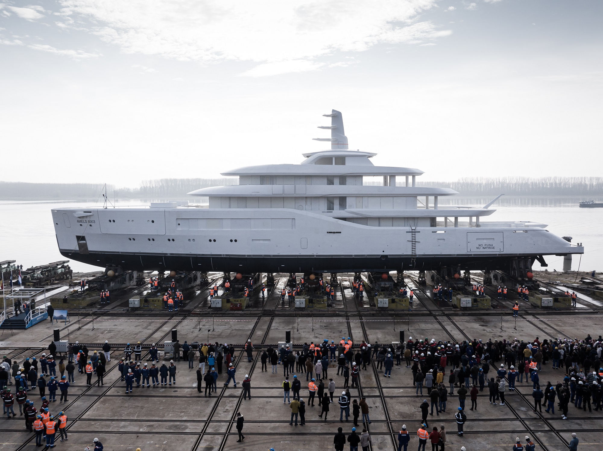 Damen Yachting have launched 80m (261’) superyacht AMELS 8003 from their facility in Romania – the third yacht in the Amels 80 range. She will now embark on her journey to Vlissingen in the Netherlands for outfitting – where her true personality will emerge.