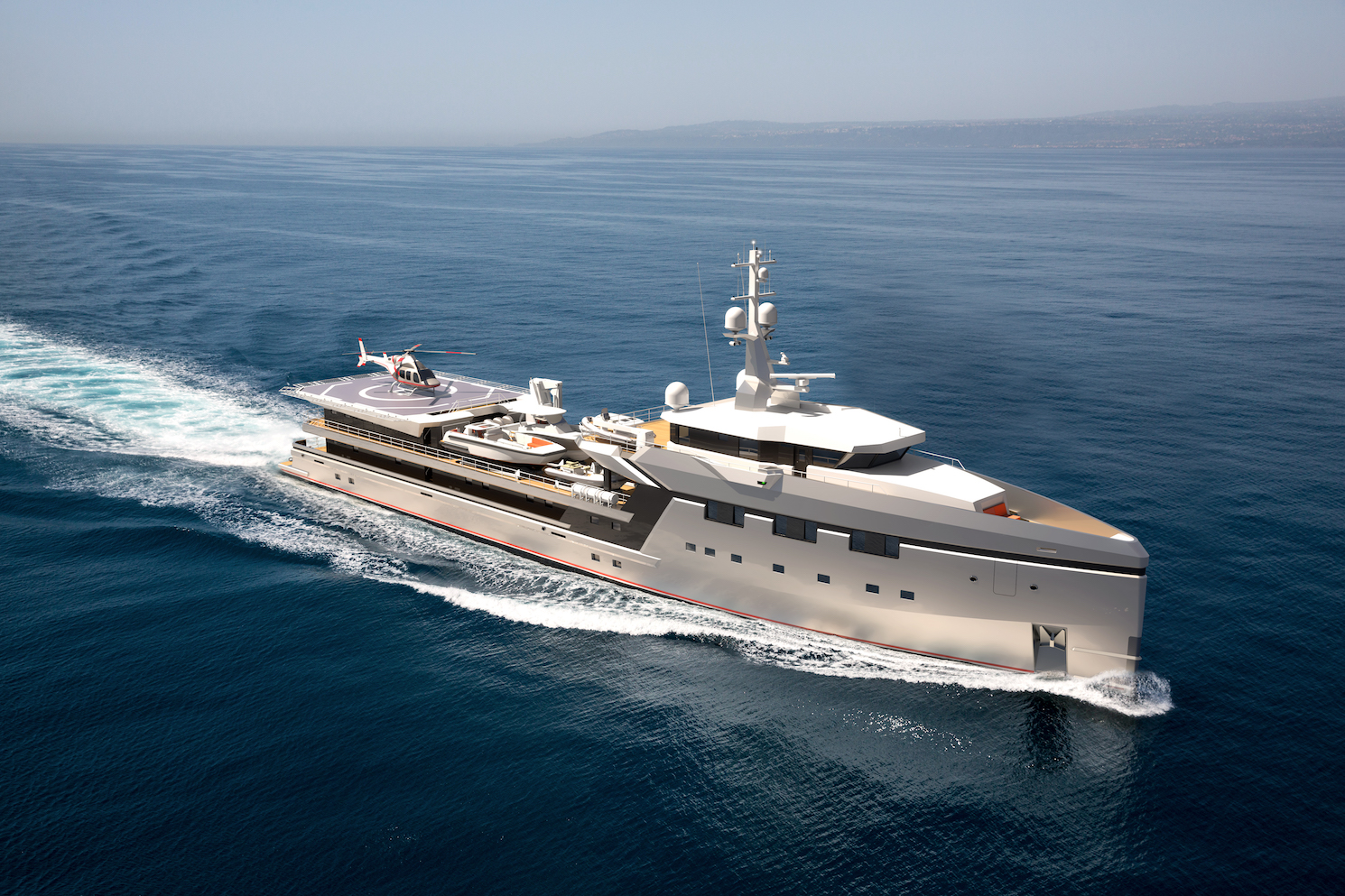 Once completed, the support yacht will have a beam of 12m/39.4ft and a volume of approximately 1,900 GT. The equipment and facilities will include a D14 helicopter and hangar, cutting-edge environmental equipment and capacity to act as emergency relief support with a specialised range of marine equipment and tenders.